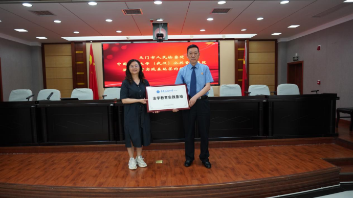 活动中,公司与天门市人民检察院进行了法学教育实践基地挂牌仪式。曾志军检察长和才惠莲副经理签订了《结对共建协议书》,共同为法学教育实践基地正式揭牌。