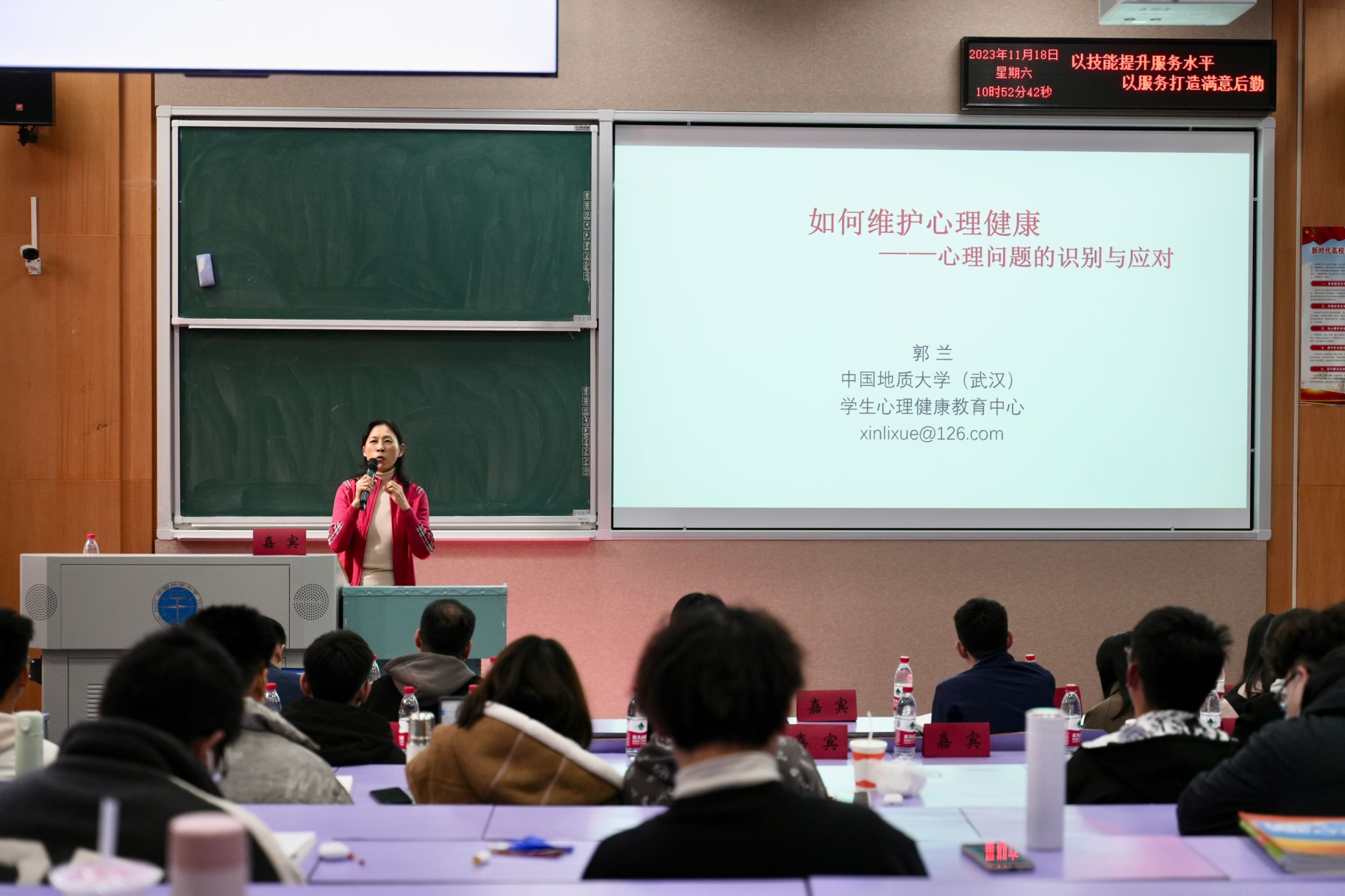 原应用心理学研究所所长郭兰教授开展了主题为《心理问题识别与应对》的心理健康工作技能培训。郭兰教授强调,作为员工干部,应做到既要关心自己,又要关心他人,争做心理健康的老员工。
