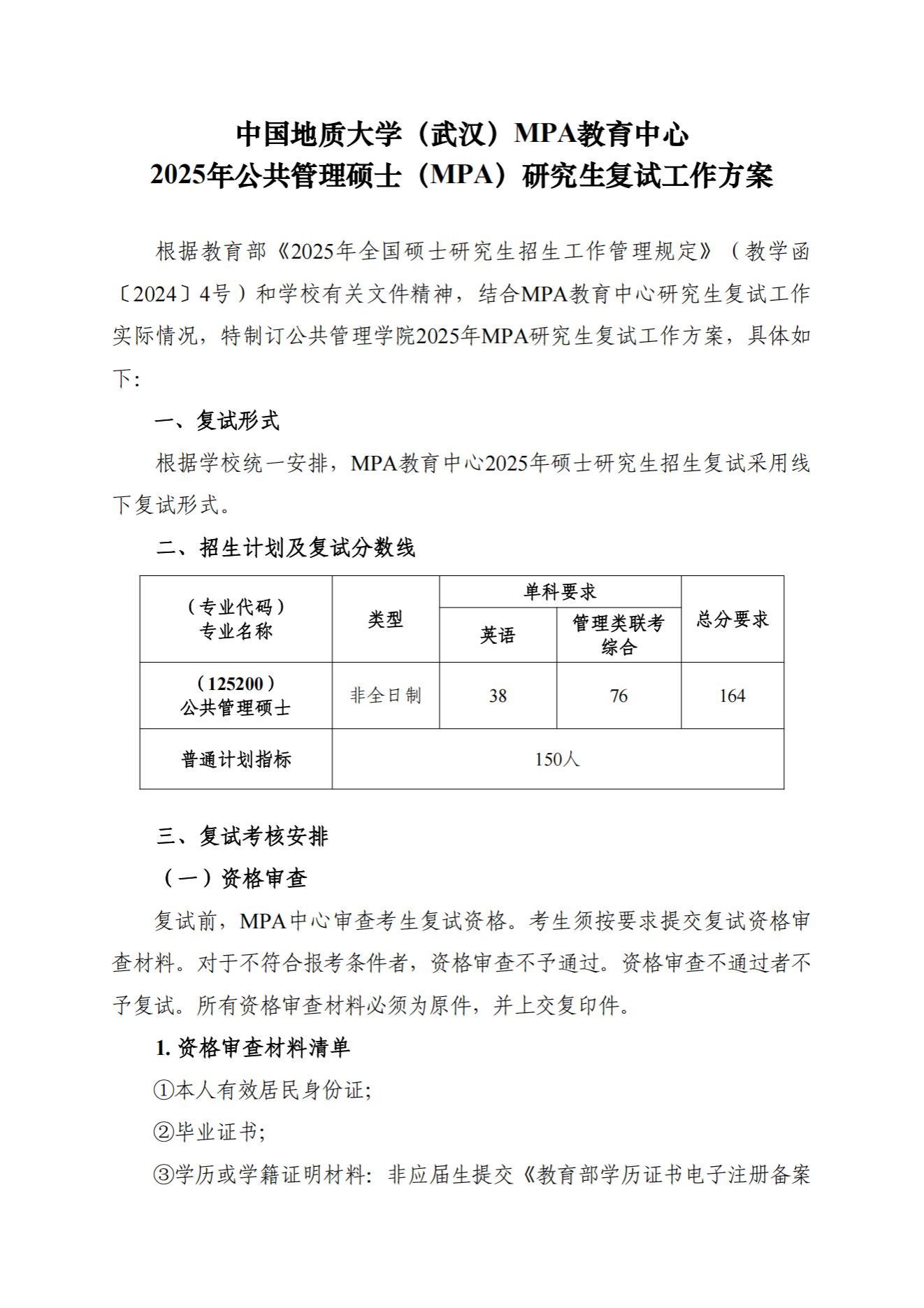 太阳集团tyc151cc(武汉)MPA教育中心2025年公共管理硕士(MPA)研究生复试工作方案