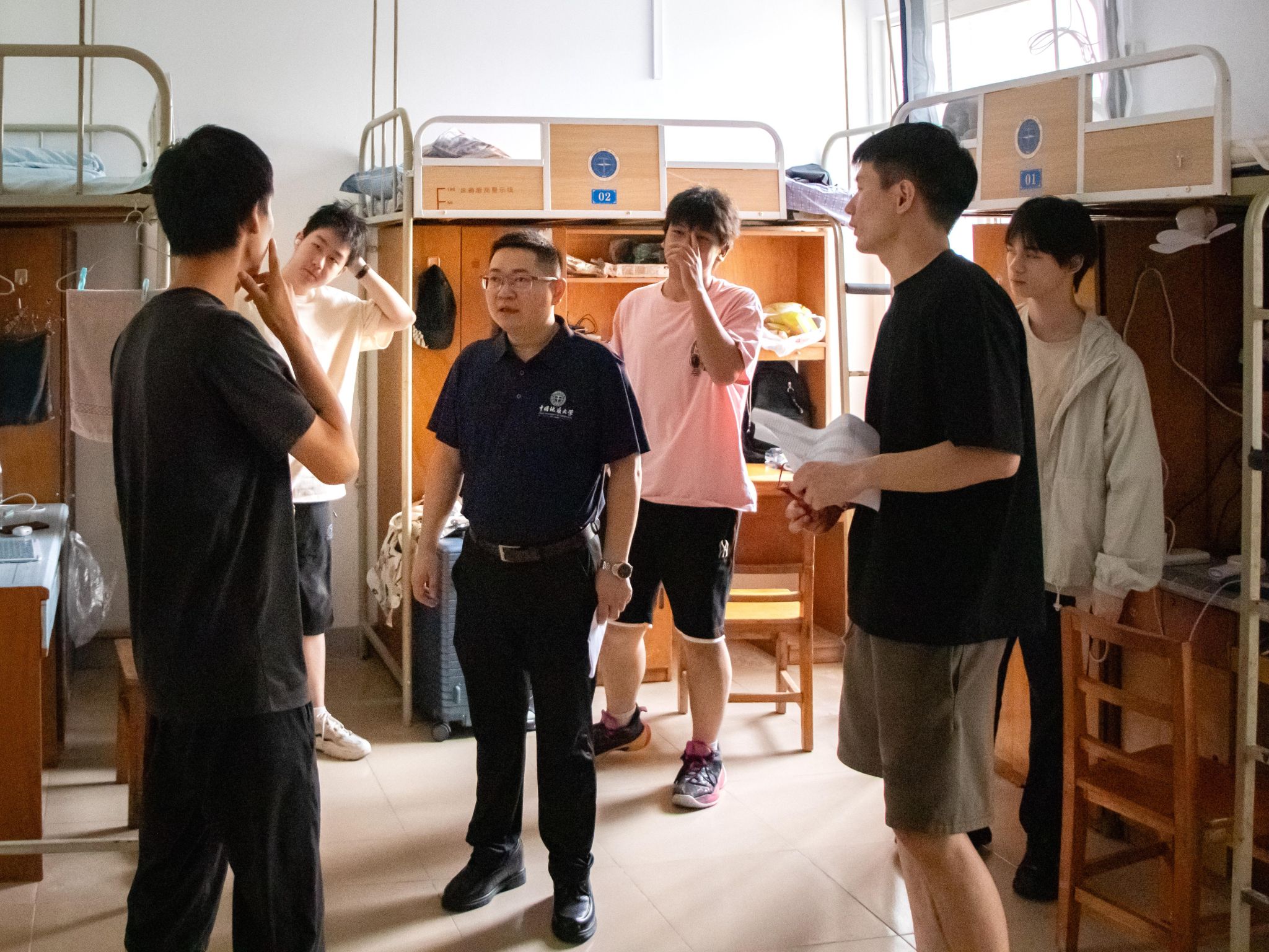为了更好了解新生入校后的学习与生活情况,加强员工宿舍管理,开展安全教育工作,9月3日下午,张宽裕、龚丽、龚健、王忠、李世祥、朱江洪、吕凌燕等公司领导在南望山校区深入走访员工宿舍,与员工展开亲切交谈。
