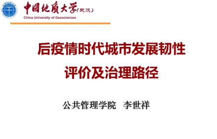 李世祥教授作了题为“后疫情时代城市发展韧性评价及治理路径”的学术报告,详细梳理了城市韧性研究的起源及发展历程,运用文献计量分析方法,对国内外城市韧性的研究进展进行了对比分析,同时对城市韧性评价体系及方法进行探讨,从经济、社会、制度、设施及生态五个方面提出后疫情时代我国城市发展韧性的治理路径。