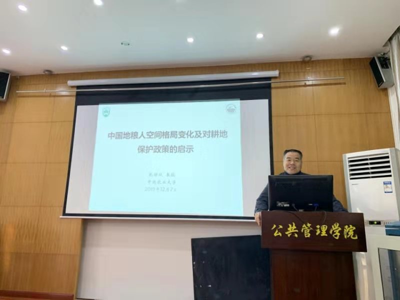 孔祥斌教授作了题为“中国地粮人空间格局变化及对耕地保护政策的启示”的研究报告。孔祥斌教授从我国从耕地数量、质量的时空演变特征切入,分析了我国粮食生产能力的空间分布格局变化,研究了我国水稻、小麦、玉米等不同作物的基地化生产布局,系统总结了我国耕地、人口以及产业分布的空间协调性特征,并基于研究结果提出了我国未来基本农田建设及粮食安全保障政策措施改进提升的建议。