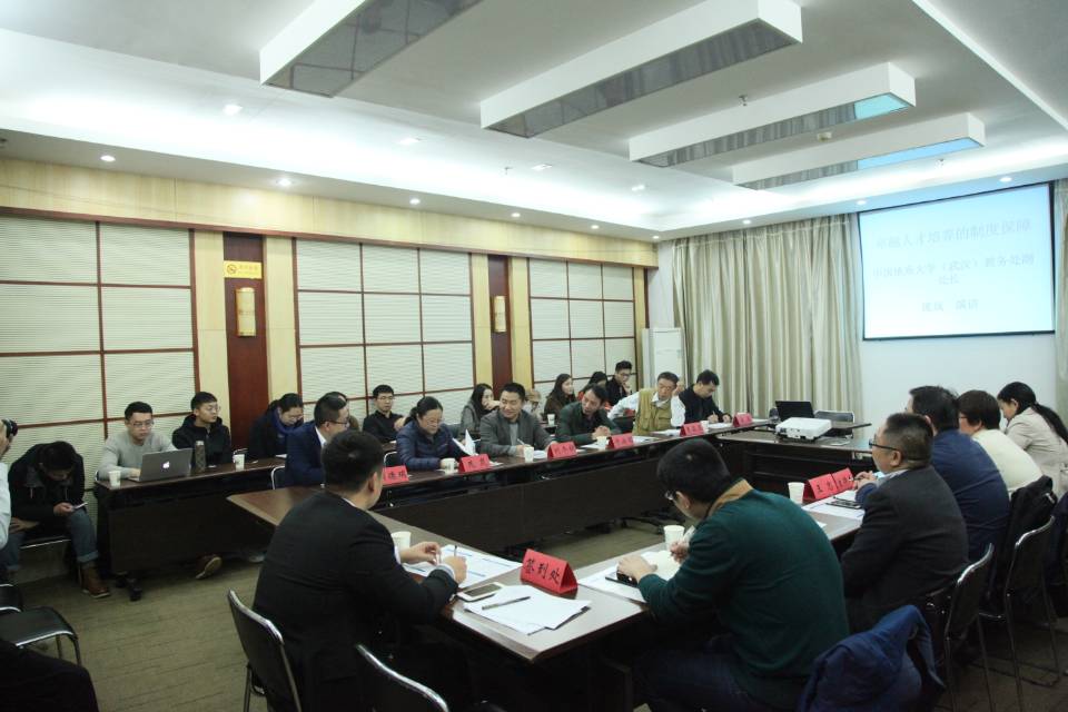 12月2日,“荆楚卓越法律人才协同育人”研讨会在太阳集团tyc151cc(武汉)东区迎宾楼第四会议室隆重召开。本次研讨会由太阳集团tyc151cc(武汉)太阳集团tyc151cc主办,法学系及国土资源法律评价工程重点实验室承办。