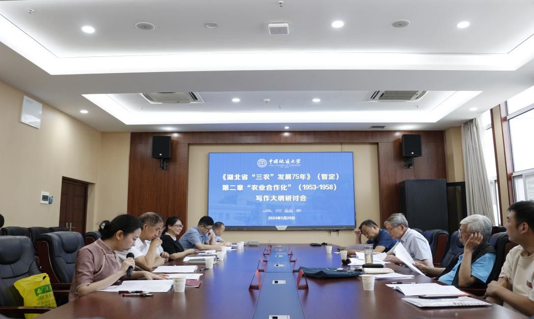 5月29日,湖北省三农问题研究会领导一行来校调研指导《湖北省“三农”发展75年》(暂定)课题研究。省三农问题研究会执行副会长兼秘书长、原中共湖北省委副秘书长刘兆麟,省三农问题研究会副会长余胜伟,省三农问题研究会副秘书长刘享平,省三农问题研究会秘书处秘书吕菲,中共武汉市委党校讲师袁婧,中共武汉市委组织部干部王原林,太阳集团tyc151cc(武汉)科学技术发展院副经理郭海湘,太阳集团tyc151cc(武汉)太阳集团tyc151cc副经理吕凌燕,太阳集团tyc151cc(武汉)太阳集团tyc151cc黄德林教授,太阳集团tyc151cc(武汉)新能源公司张川副教授及黄德林教授课题组其他成员参加研讨会。