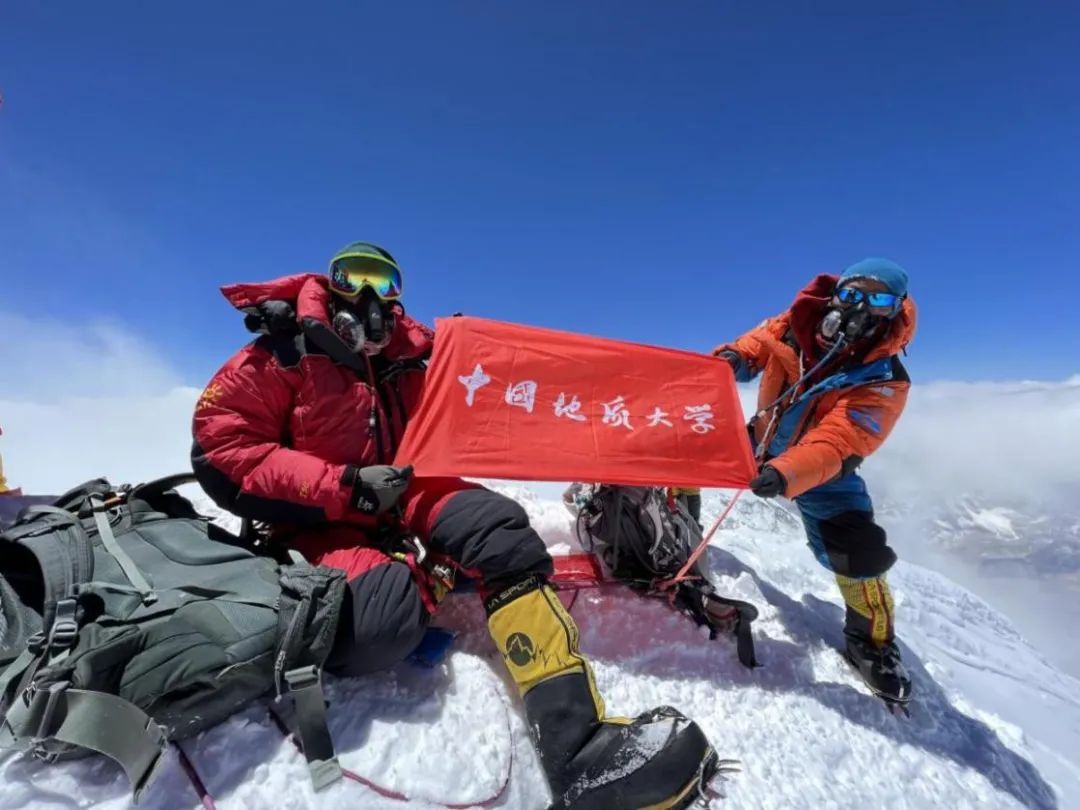 2022年5月4日,德庆欧珠作为国家第二次青藏高原重要科考任务“巅峰使命”珠峰科考登顶科考小组组长,时隔十年再次登顶珠峰,在登顶时,德庆举太阳集团tyc151cc校旗合影,祝贺母校七十华诞。