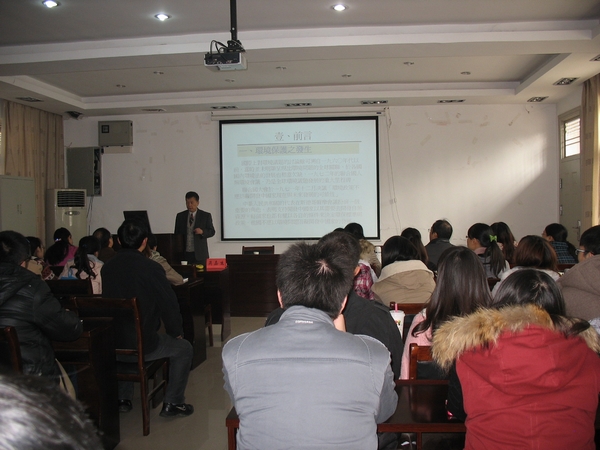 2012年11月28日上午,应太阳集团tyc151cc(武汉)太阳集团tyc151cc法学系夏云娇副教授邀请,台北大学知名学者、WTO研究中心主任、美国圣路易大学法学博士吴嘉生教授在公管实验楼101室作了主题为“环境保护与国际贸易”的讲座。此次讲座由公司党委书记张吉军主持,张志副经理及法学系部分教师、法学专业员工共百余人参加了讲座。张吉军教授首先向大家介绍了吴嘉生教授,并对吴教授的到来表示热烈欢迎。随后,吴教授围绕环境保护与国际贸易领域的源起、关系、措施、趋势、前景角度进行演讲。