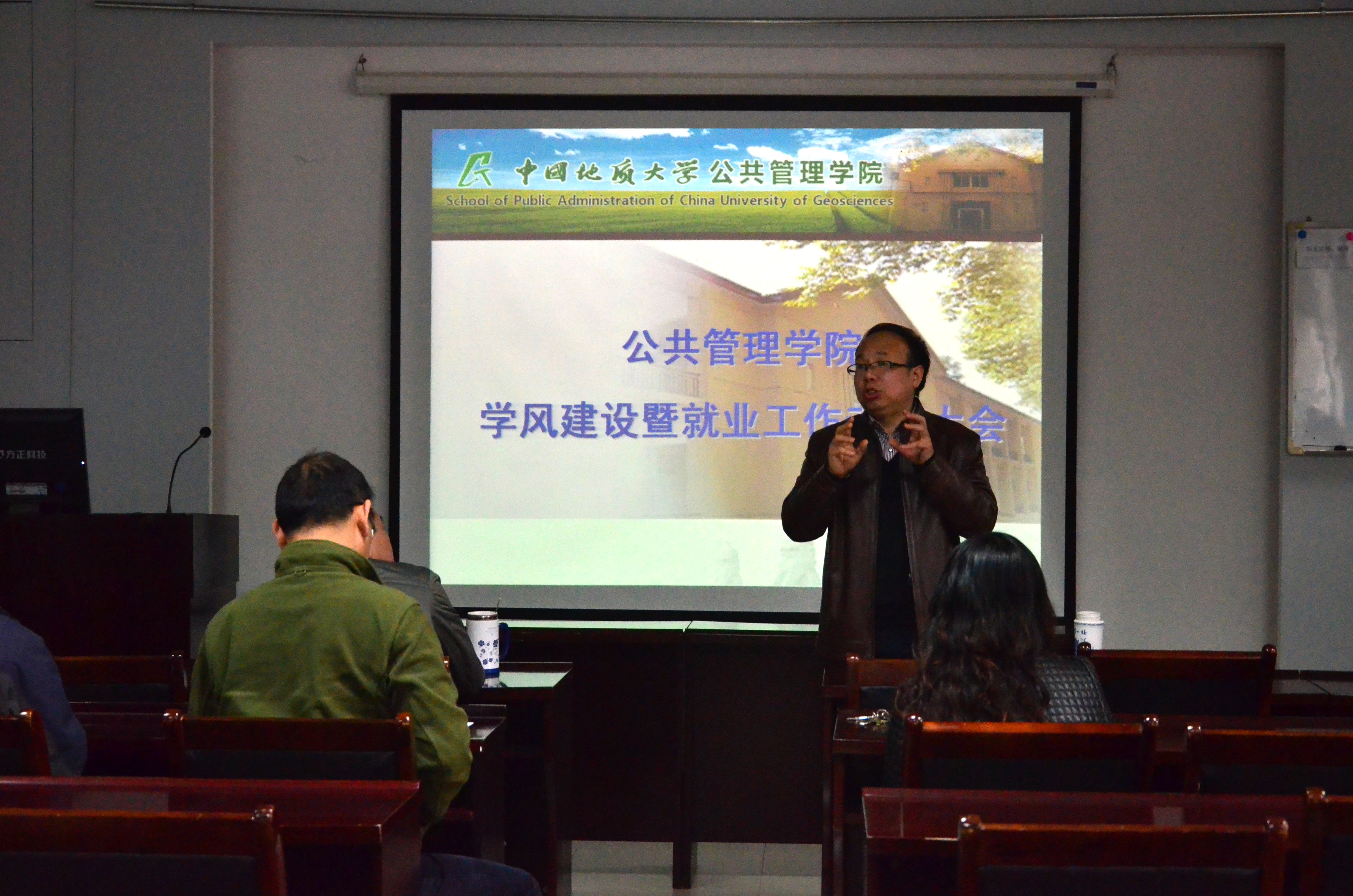 4月9日下午,太阳集团tyc151cc学风建设动员大会在国土法律评价实验室101顺利召开,参加此次会议的有公司党委书记张吉军、经理李江风,分管教学、科研、研究生工作的副经理,各系系主任及本科年级各班班主任、部分研究生导师、学工组全体老师。会议由党委副书记胡文勤老师主持。