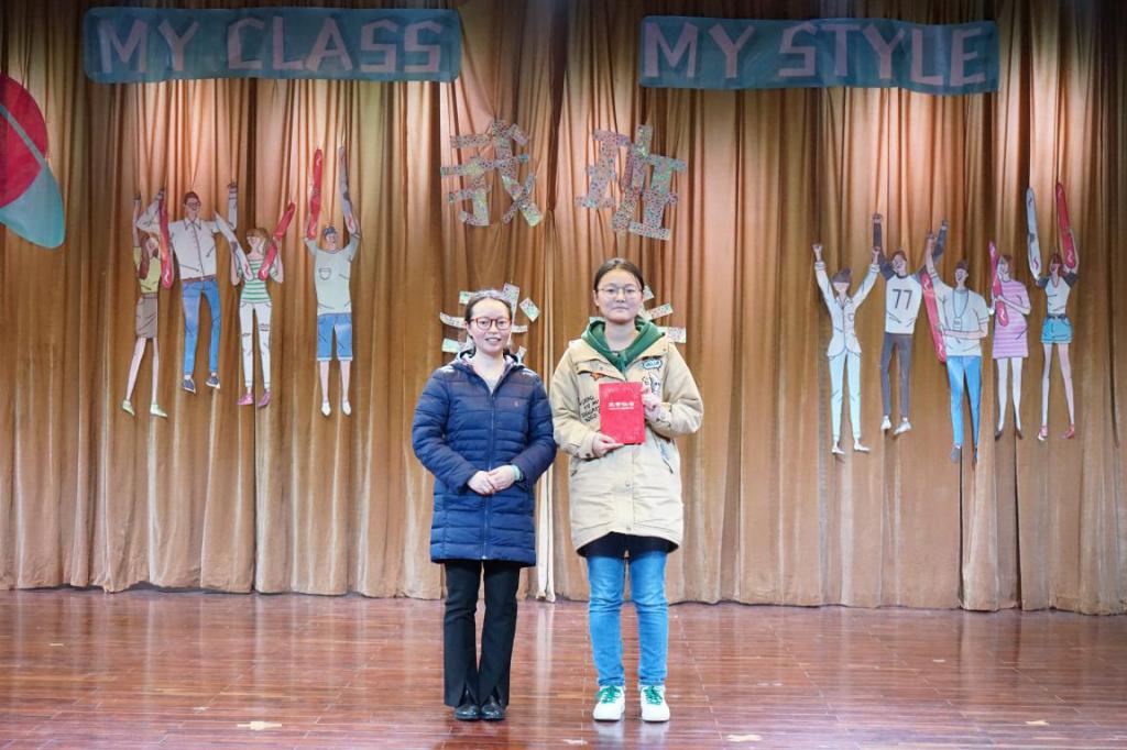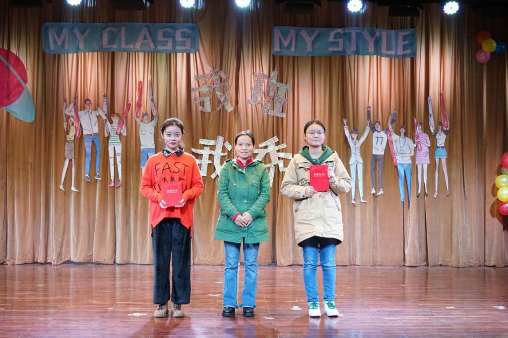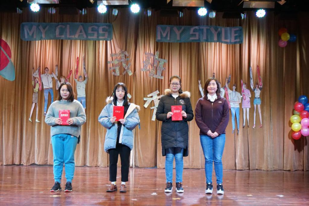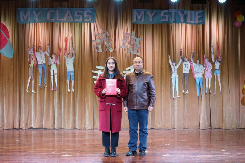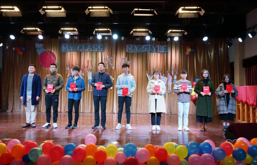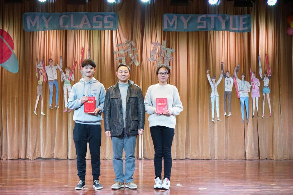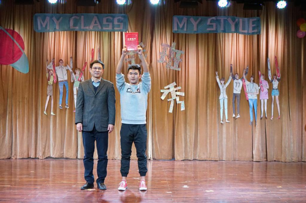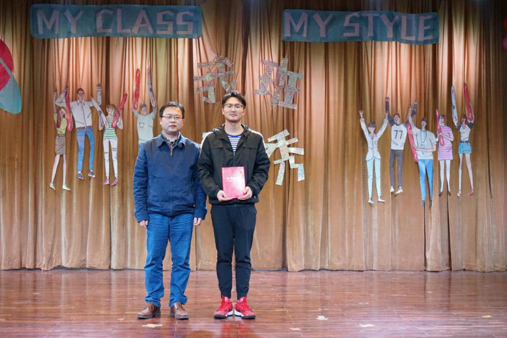 随后进行的是班级风采展示环节暨“我班我秀”颁奖。土地资源管理系党支部书记周学武为“最具凝聚力奖”获奖班级174181班、173182班颁奖;