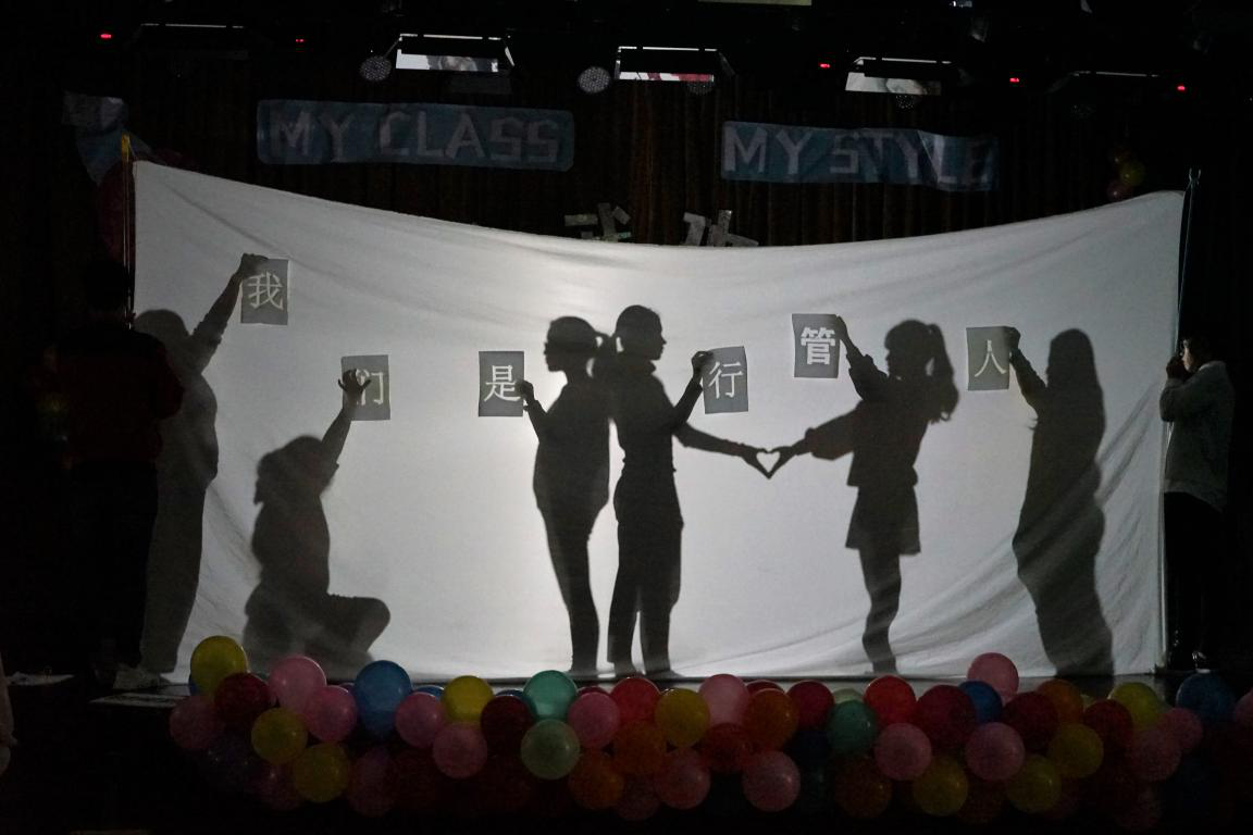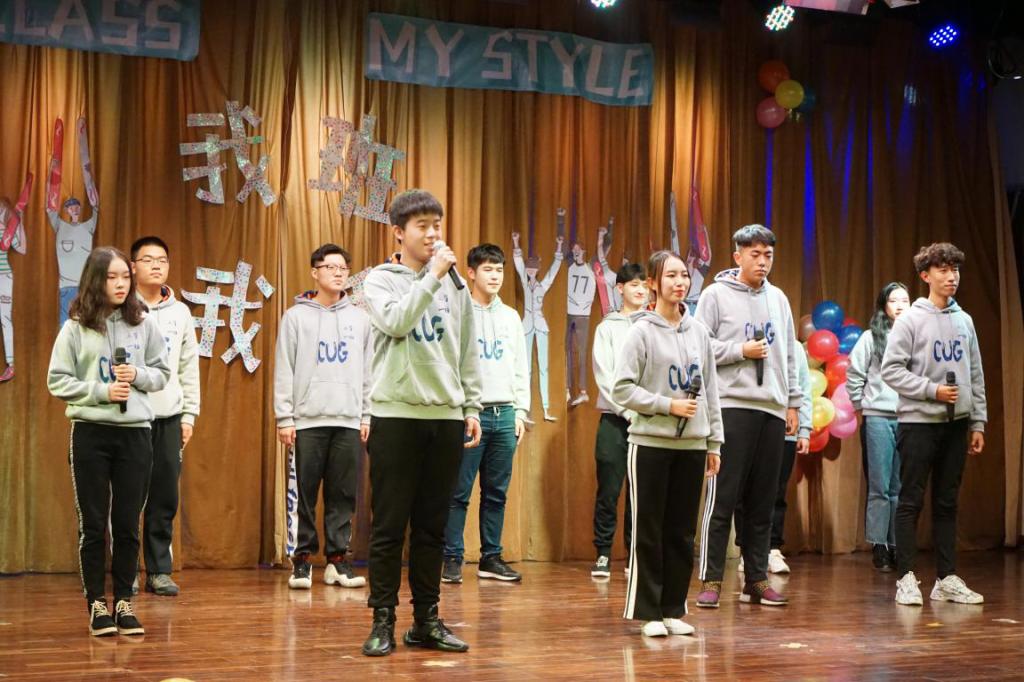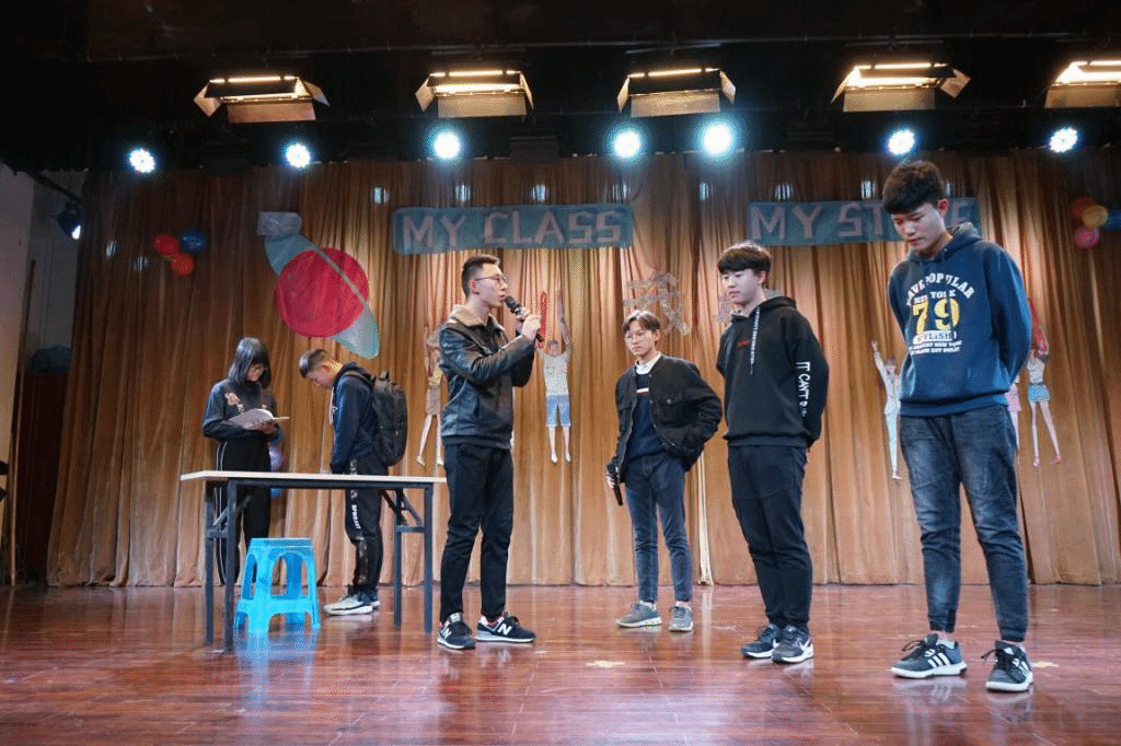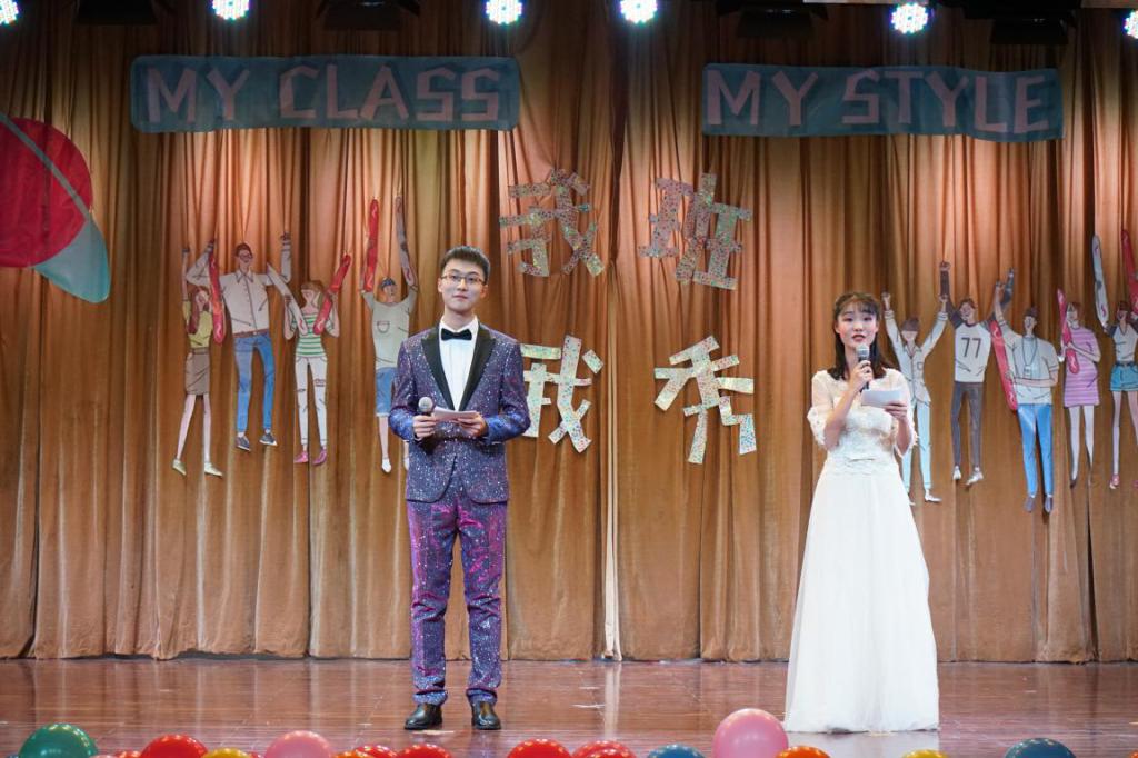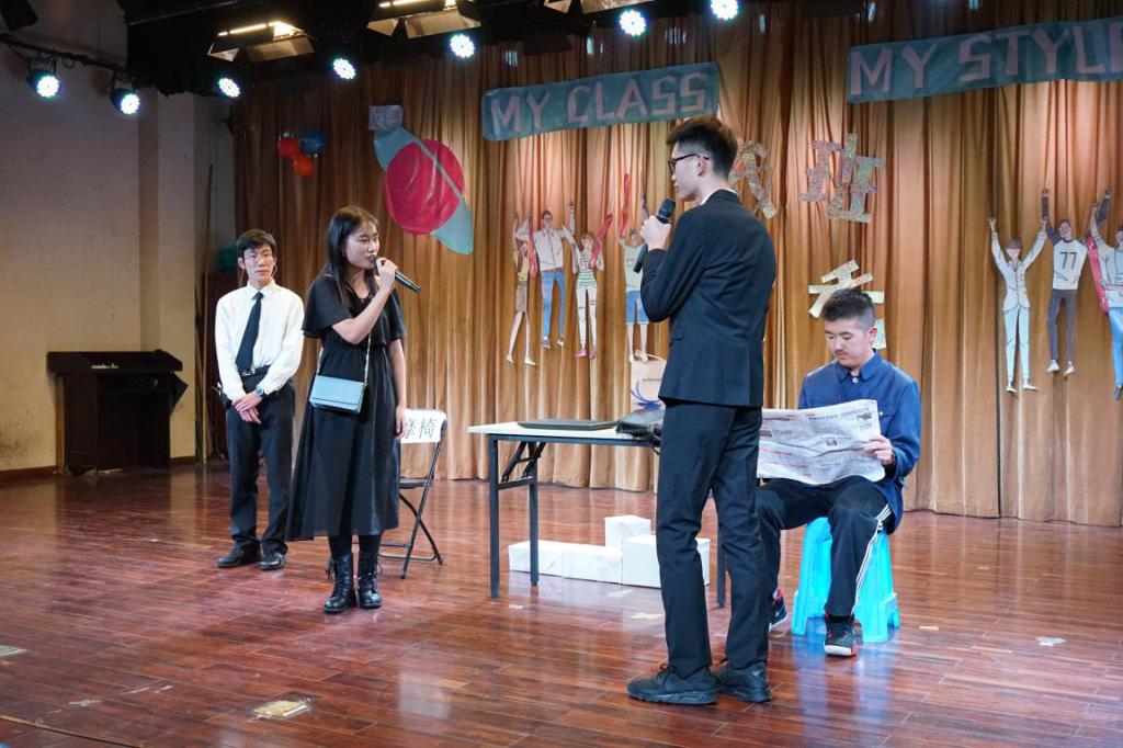 2018级新生9个班级按照抽签顺序依次上台进行班级风采展示。