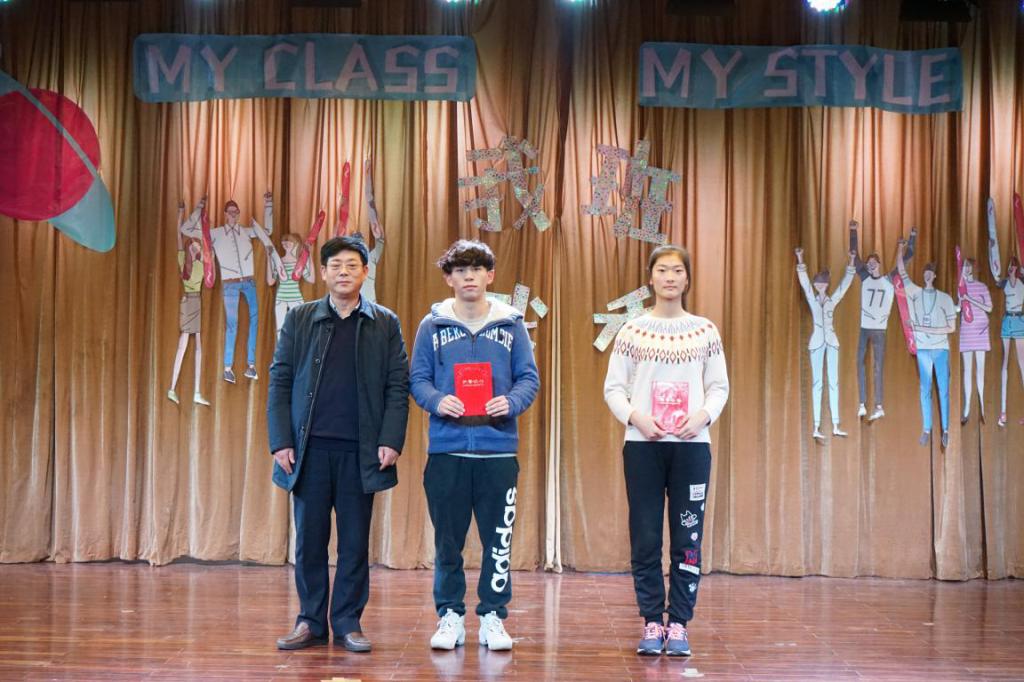 党委副书记刘国华为获得第三名班级174182班颁奖;