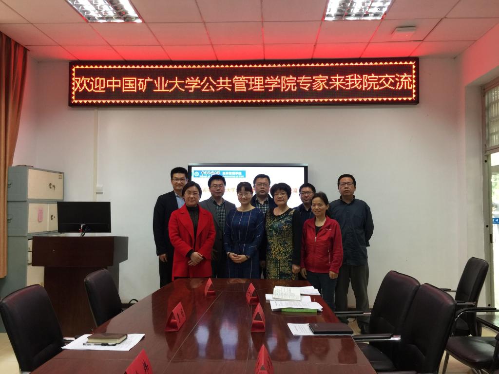 2019年4月18日上午,中国矿业大学太阳集团tyc151cc系副主任曹明、教授刘雪凤一行4人来公司调研交流。主管教学副经理王忠、系主任李世祥、系书记刘中兰、系副主任张士菊及公共行政系教师罗辉教授参加本次调研。会议由李世祥主任主持。