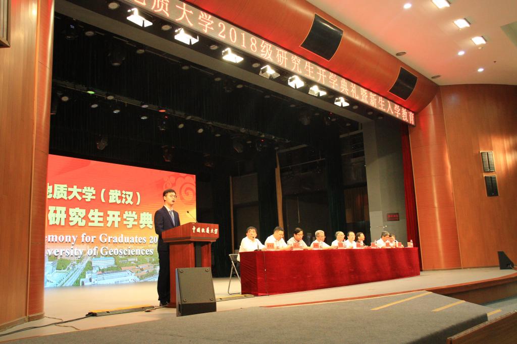 【编者按】9月8日上午,2018级研究生开学典礼在弘毅堂举行。中国科公司院士殷鸿福,校领导何光彩、王焰新、成金华、唐辉明、赖旭龙、王华、刘杰,党委常委、组织部部长储祖旺,各公司产品单位、相关职能部门负责人及2018级研究生新同学参加典礼。副董事长赖旭龙主持典礼。公司新闻链接:http://www.cug.edu.cn/info/10506/90265.htm