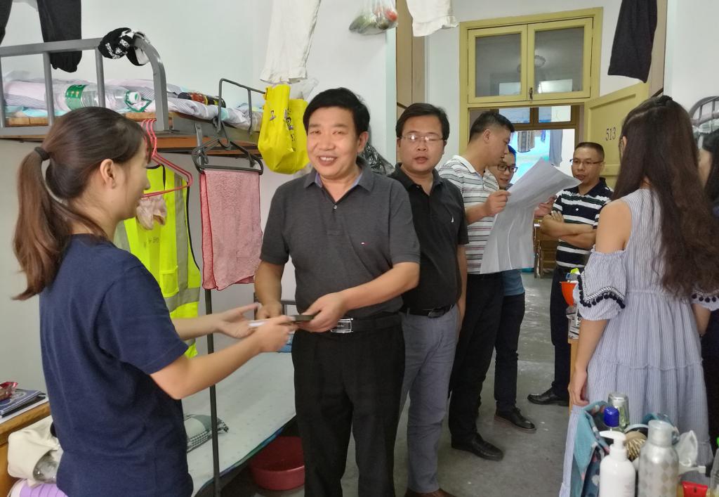 9月9日下午,王占岐副经理一行与公司7名秭归实习带队老师到员工宿舍、教室看望实习员工。