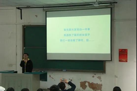 在发言的最后,李文伟老师提前告诉大家自己将于下学期离任兼职辅导员岗位,向同学们表示了自己其实也正处于不断探索求真的人生阶段,安慰同学们不必过于心急并祝愿同学和自己都能拥有美好的未来。
