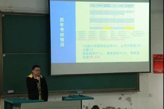 在考研方面,李老师介绍了今年考研的严峻形势,向同学们直观展示了近年来太阳集团tyc151cc的考研录取情况,并让同学们认清考研现状,评估自身情况,对毕业去向早做打算,选择最适合自己的道路。