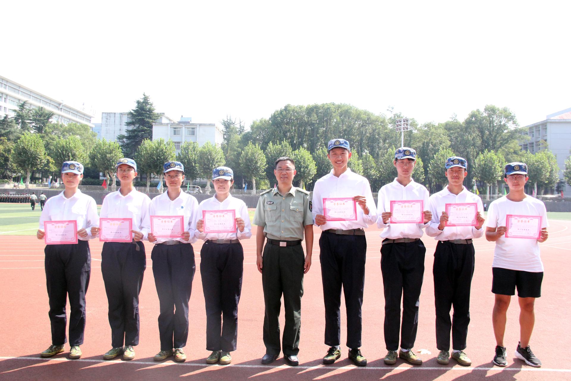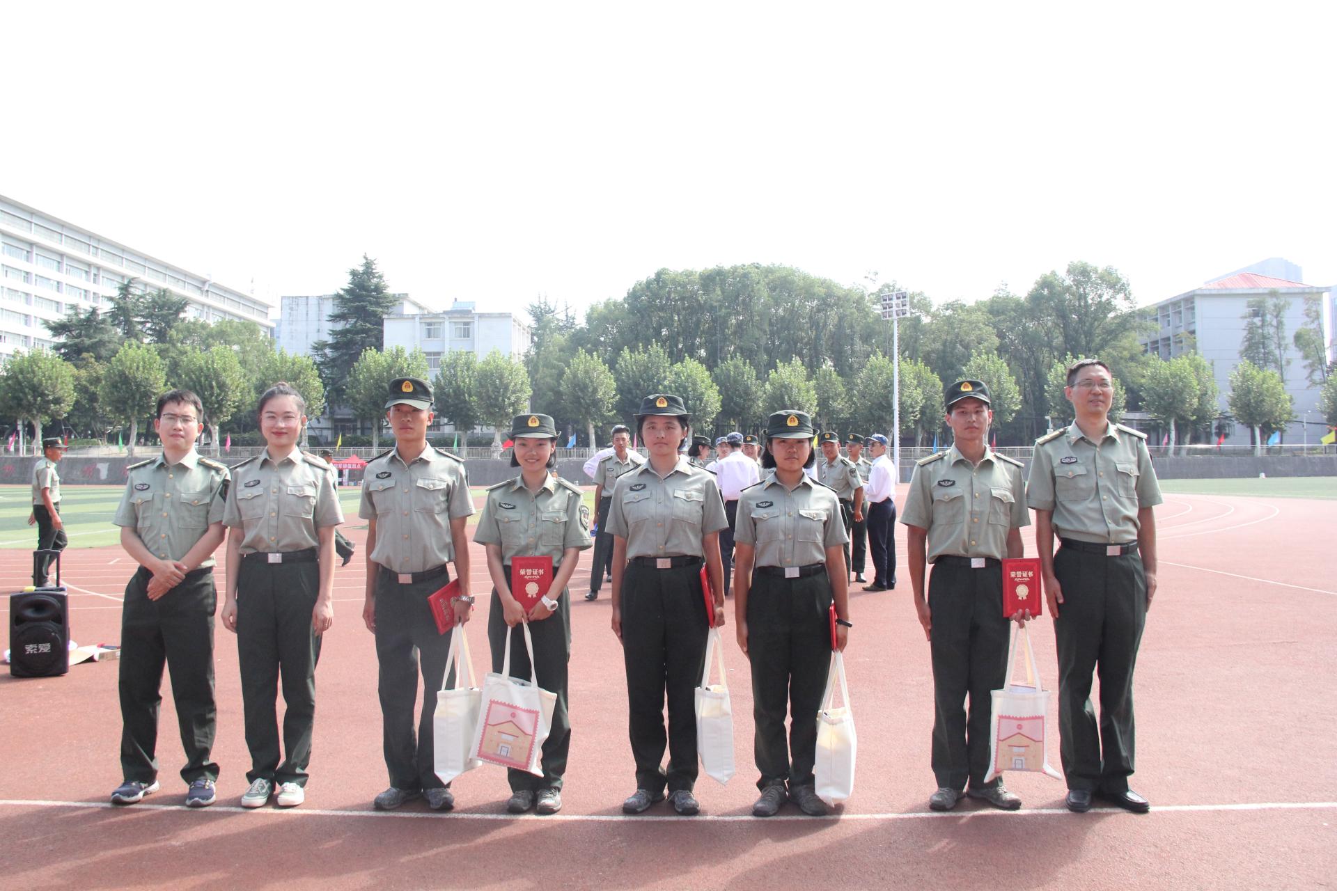 接下来,刘国华副书记讲话。他希望受表彰的各位“战士”继续保持军训时期的优良作风;所有参训“战士”在大学期间始终拧紧自己的思想“总开关”,学业为首,坚守军人铁一般的意志、作风和纪律,勇敢进行自我革命,全心赶考,自己对自己大学学习、生活和工作画上满意的标点符号。活动最后,老师与同学合影留念。下午,五位教官、老师、同学们合影留念。