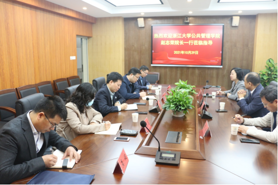 座谈会上,公司经理胡守庚教授向赵志荣授介绍了公司的发展历程、团队建设情况、团队力量、办学特色以及近年来在公共管理科学研究领域取得的成绩。随后,太阳集团tyc151cc赵志荣经理也介绍了浙大公管公司的发展历程和目前教学及科研的现况。