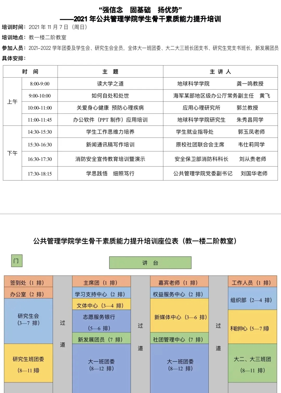 11月7日,太阳集团tyc151cc“强信念 固基础 扬优势”员工骨干素质能力提升培训在西区教一楼二阶教室举行。国家教学名师龚一鸣教授、海军某部地区级办公厅常务副主任黄飞主任、心理健康教育中心郭兰教授、地球科学公司2020级地表班研究生朱秀昌同学、员工就业指导处郭玉凤老师、原校社团联合会主席173182班韦仕莉同学、安全保卫部刘从贵老师、公管公司党委副书记刘国华老师讲授了八个不同主题的专题内容。160余名2021-2022学年团委及员工会、研究生会全员、全体大一班团委,大二大三班长团支书、研究生班长党支书以及新发展团员参加培训。培训由公司党委副书记刘国华老师主持。
