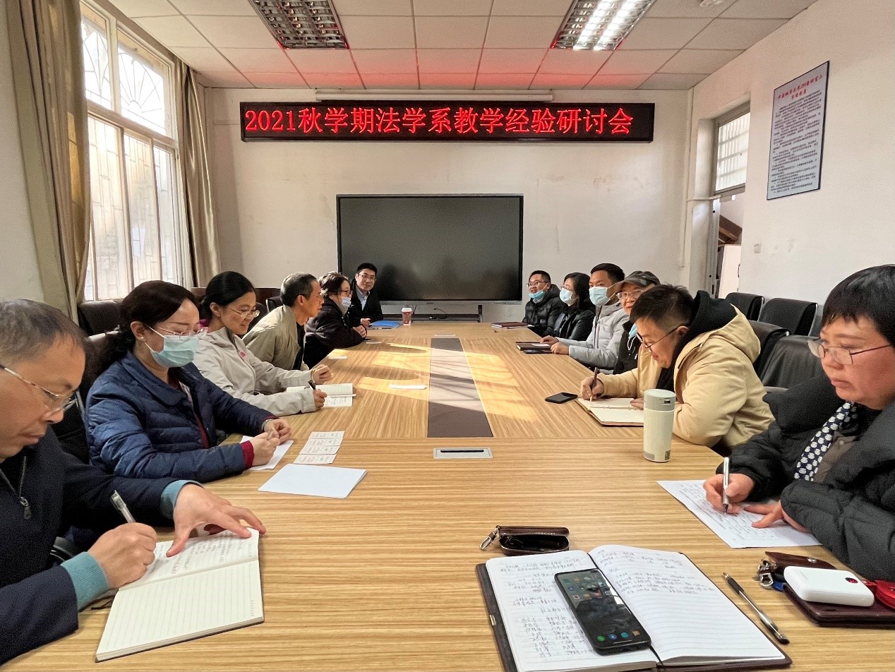 2021年11月25日下午两点,法学系全体教师齐聚公管楼B107,围绕“态度”“方法”“投入”三个关键词,召开了2021年秋学期的教学经验研讨会。
