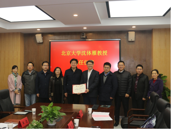 (通讯员李继杰 摄影魏曦光)12月8日,北京大学教授沈体雁受聘担任公司兼职教授。公司党委书记张宽裕,副经理才惠莲、王忠、龚健,公共行政系和土地管理系部分老师代表参加受聘仪式。龚健主持仪式。
