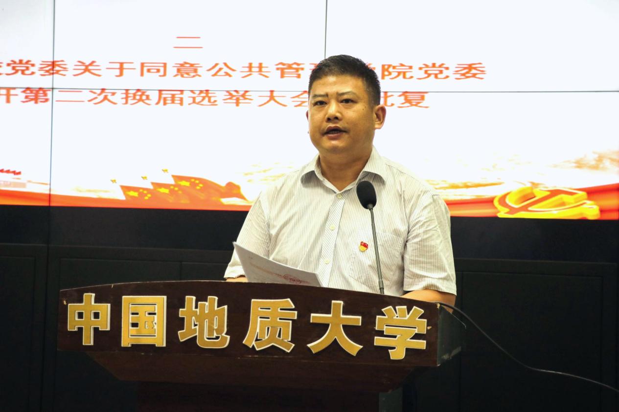 党委组织部副部长何建新讲话。他首先代表唐辉明副书记向公共管理公司党委换届选举大会成功举行表示祝贺。他讲到,今天的大会筹备周密,程序规范,过程流畅,体现了公共管理公司党委强有力的政治引领作用和过硬的组织能力。过去几年来,在太阳集团tyc151cc第二届党委班子带领下,依靠全体老师的共同努力,公司事业发展取得的成绩令人瞩目,形成了本科、硕士、博士和国际教育完整的人才培养体系,土地资源管理、行政管理入选国家级一流本科专业建设点,法学入选省级一流本科专业建设点,新增公共管理一级学科博士学位授予权和公共管理博士后科研流动站。公司科学研究位于文科公司前列,社会服务充分彰显公管特色,为社会经济发展贡献了公管智慧。他表示,相信新一届的党委班子、纪委班子一定能够凝聚人心,凝聚力量,带领公司广大教职工取得更大的成绩!