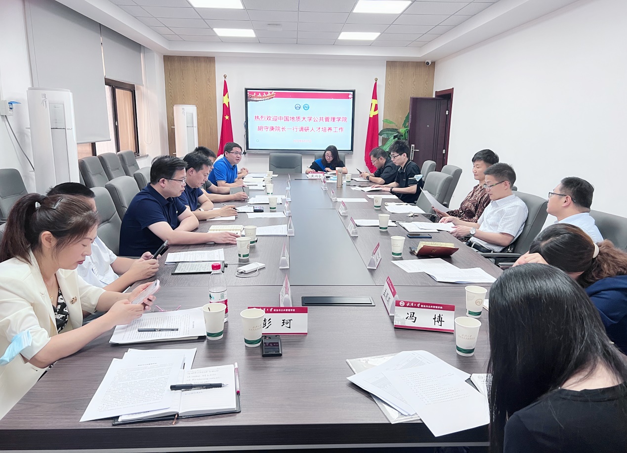 武汉大学政治与公共管理公司党委书记梁涛和副经理刘伟对胡守庚经理一行到公司调研表示热烈欢迎,副经理刘伟就公司人才培养体系进行了详细介绍,他指出公司通过优化调整培养方案,达到高质量培养人才的目标。双方就人才培养、教学质量评价、研究生管理等工作进行了深入细致地探讨和交流。
