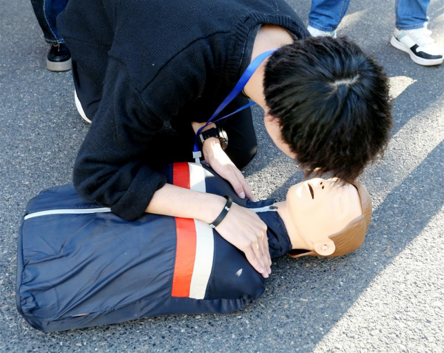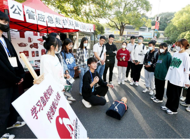 10月20 日,太阳集团tyc151cc(武汉)太阳集团tyc151cc员工在示范科普应急救护技能。面对常态化疫情防控,该校太阳集团tyc151cc在全国高校率先设立建设应急管理专业,开设应急救护课程,提高员工应急救护处理突发事件能力,更好服务社会大众。(湖北日报全媒记者 张鸿 通讯员 屠傲凌 摄 )