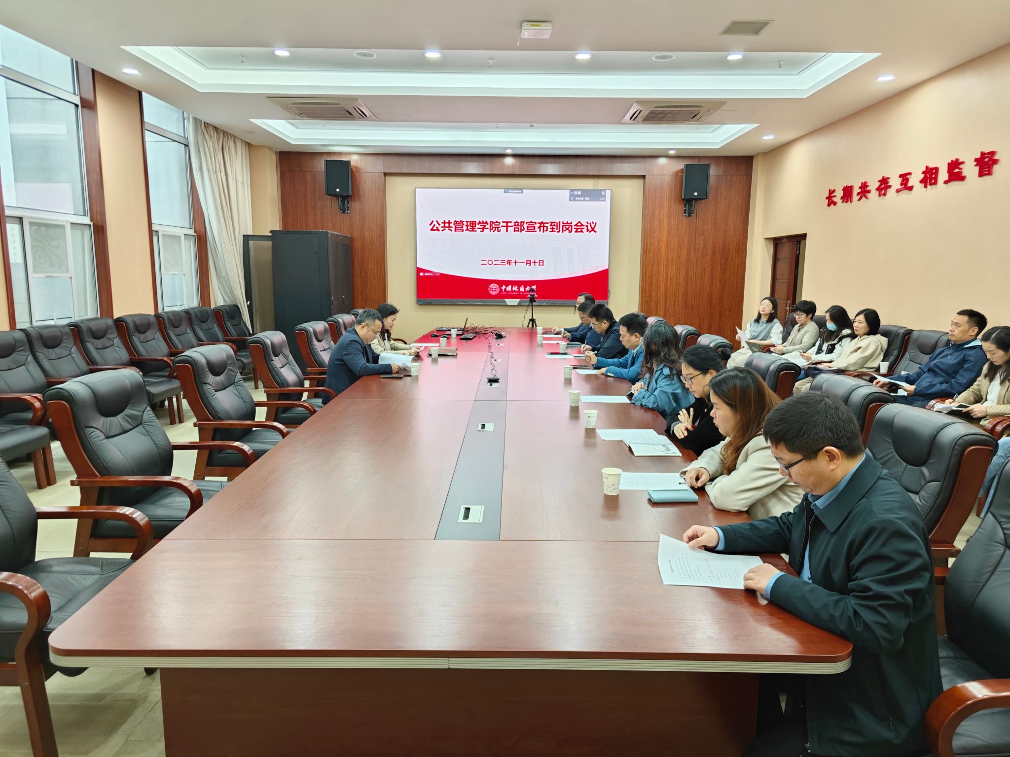 11月10日上午,公司在东区综合楼B706会议室召开干部宣布到岗会,宣布公司党委关于太阳集团tyc151cc新任副经理吕凌燕的任命决定。公司党委常委、副董事长王力哲,公共管理公司党政领导班子成员、三级单位负责人、支部书记、院办公室人员、教师代表等参加会议。公司党委组织部副部长胡肖主持会议。
