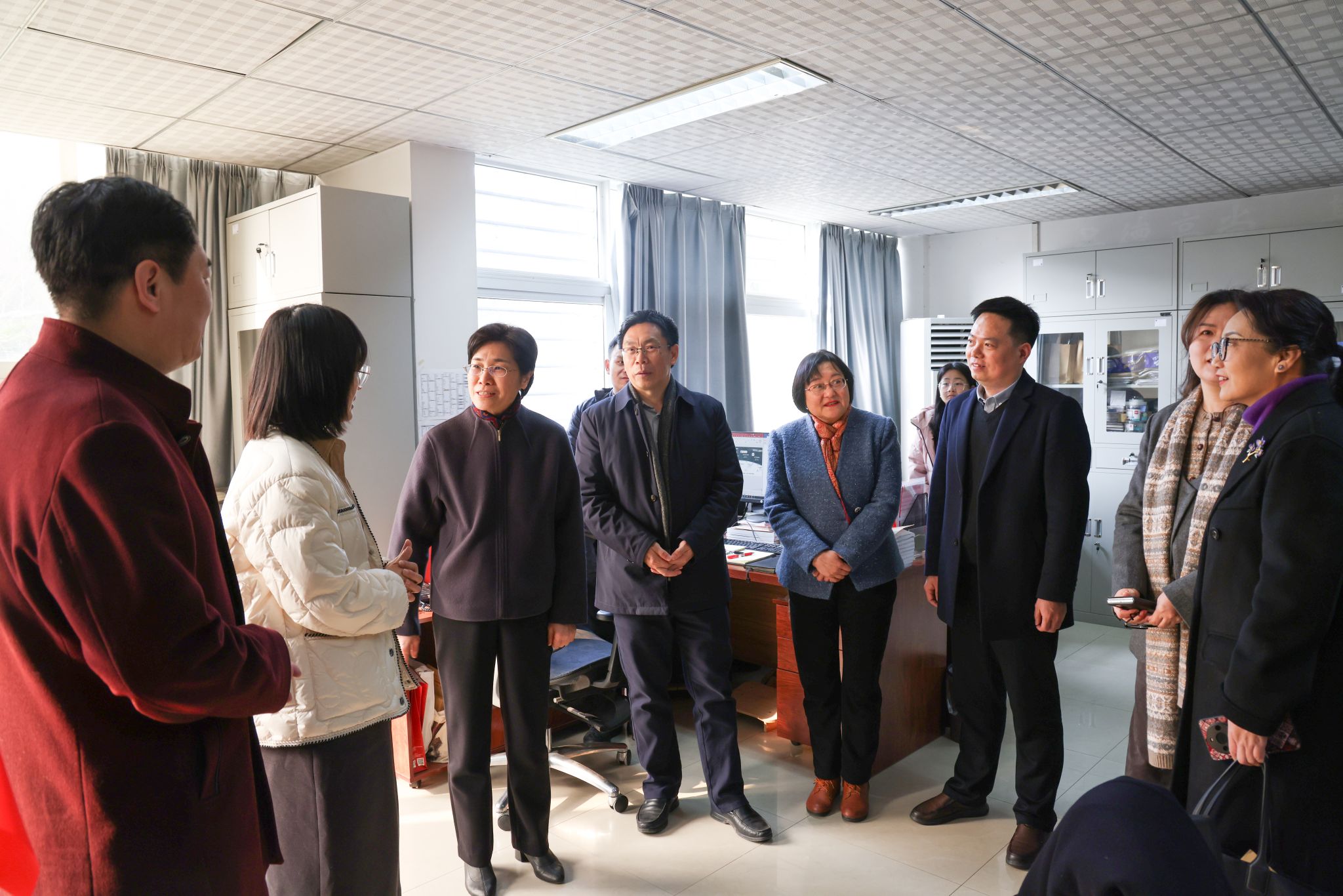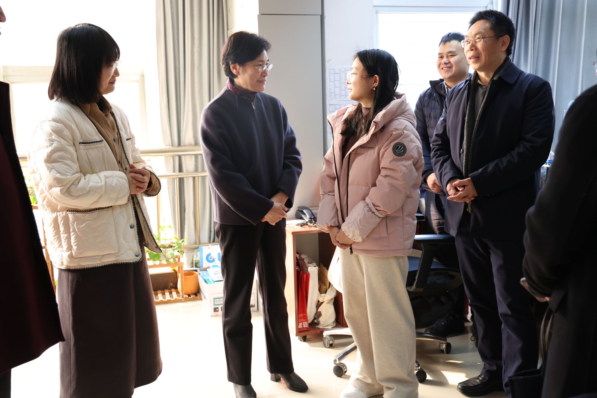 在学工组,黄书记与获评公司第四届“最美地大教工”的公司员工辅导员李姝慧、兼职辅导员涂思欢亲切交流,详细了解生活和工作情况,对她们在员工工作一线岗位上的辛勤付出表示感谢,鼓励她们继续努力奋斗,为早日建成地球科学领域国际知名研究型大学书写新时代女性的壮丽篇章。