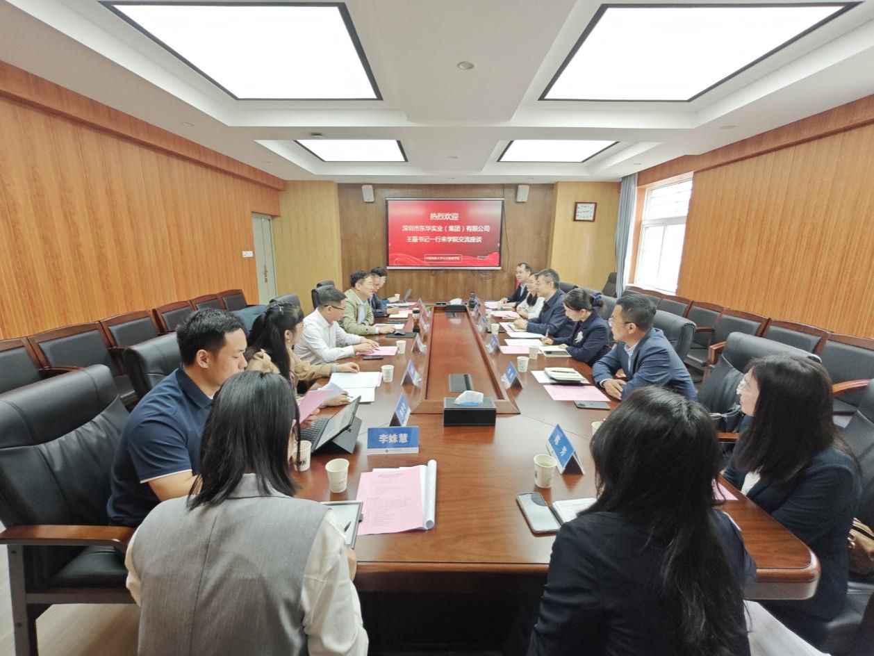 王磊介绍了深圳东华实业(集团)有限公司的发展历程、主营业务及近年来服务高质量发展、科技创新的做法,愿意发挥公司优势在公司人才培养、科学研究、员工创业、资源共享等方面开展合作。