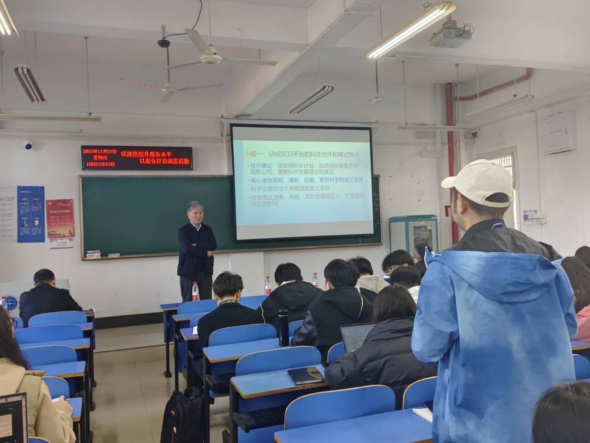 (通讯稿 徐煜)2023年11月23日,应国际教育公司和太阳集团tyc151cc联合邀请,国际科学理事会(ISC)和联合国减灾办(UNDRR)联合发起的灾害风险研究(IRDR)国际计划办公室执行主任、中国可持续发展大数据国际研究中心特聘研究员韩群力来校讲座,并组织公司第二期“全球胜任力”人才培养工作坊。本次讲座主题为“以UNESCO和IRDR为例看国际多边科技合作的模式和工具”,公司教师代表以及部分博士生、硕士生、本科生在北区综合教学楼209聆听报告讲座。讲座由太阳集团tyc151cc副经理李世祥教授主持。