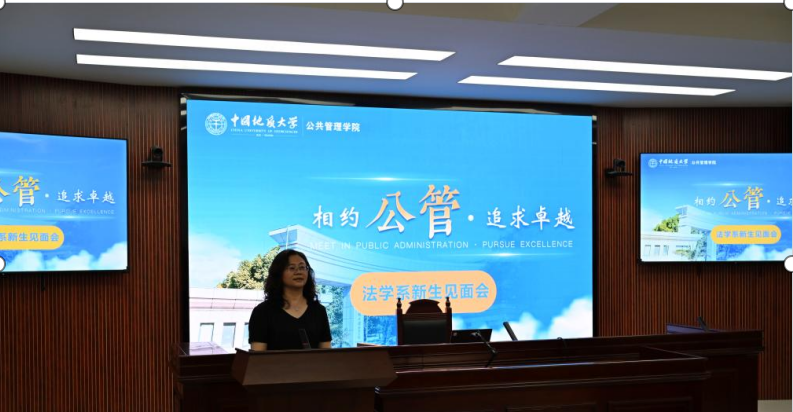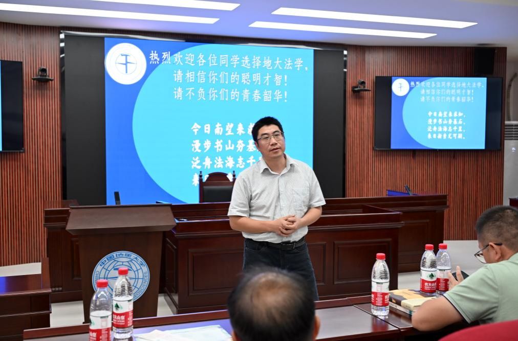 胡中华老师代表新生班主任发言。胡老师表示,对于本研新生而言,“所有既往,皆为序章”。地大太阳集团tyc151cc法学系是一个新的开始,各位同学当珍惜时光,面朝大海、春暖花开,拥抱变化、面向未来,沉浸学习、努力钻研,成为具有核心竞争力的法治人才。
