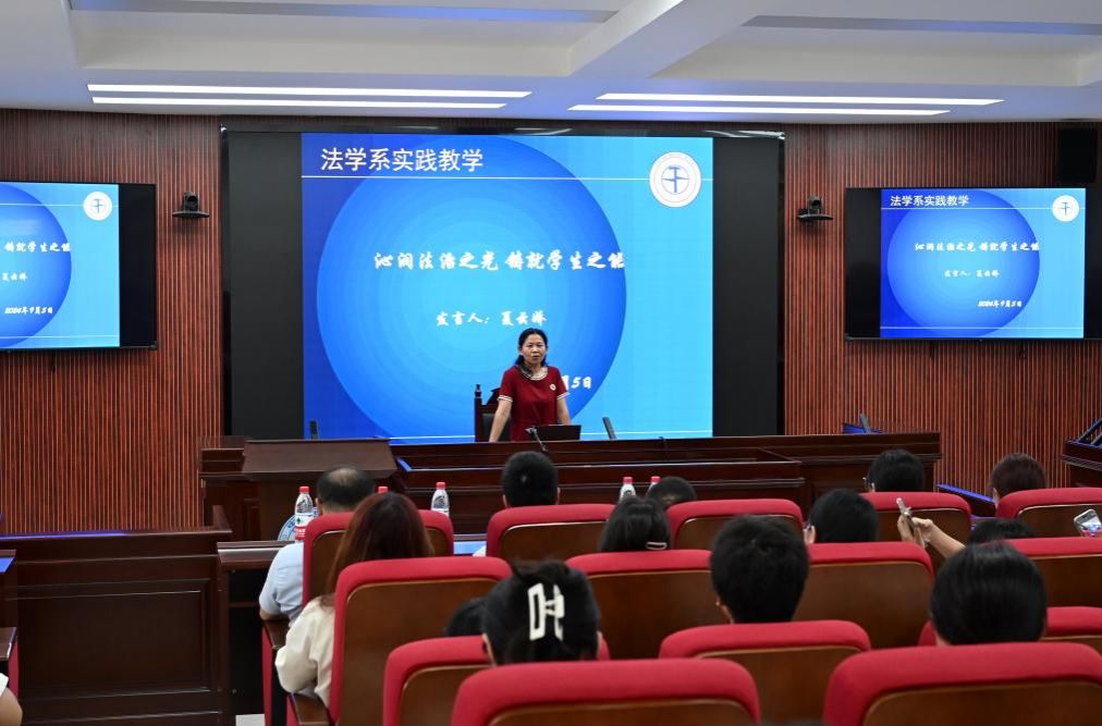 夏云娇老师以《沁润法治之光 铸就员工之能》为题,围绕“一个目标、两个内外、三个关键、四个阶段、五位一体”阐述了法学教学实践的目标与路径,为法学系本研新生未来的教学实践指明方向。